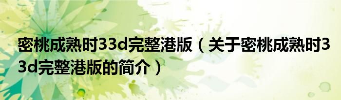 本文關于密桃成熟時33d完整港版的簡介就講解完畢,希望對大家有所幫助。