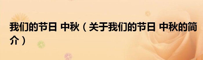 大家好,我們的節日 中秋,關于我們的節日 中秋的簡介很多人還不知道,現在讓我們一起來看看吧!
