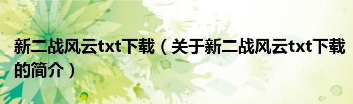 本文關(guān)于新二戰(zhàn)風(fēng)云txt下載的簡介就講解完畢,希望對大家有所幫助。