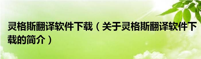 本文關于靈格斯翻譯軟件下載的簡介就講解完畢,希望對大家有所幫助。