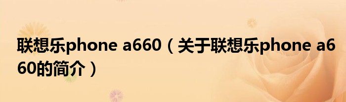 本文關(guān)于聯(lián)想樂phone a660的簡(jiǎn)介就講解完畢,希望對(duì)大家有所幫助。