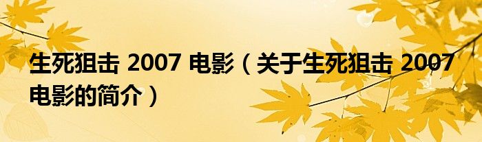 本文關(guān)于生死狙擊 2007 電影的簡(jiǎn)介就講解完畢,希望對(duì)大家有所幫助。