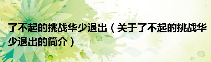 大家好,了不起的挑戰華少退出,關于了不起的挑戰華少退出的簡介很多人還不知道,現在讓我們一起來看看吧!