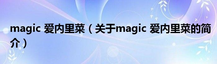 大家好,magic 愛內(nèi)里菜,關(guān)于magic 愛內(nèi)里菜的簡介很多人還不知道,現(xiàn)在讓我們一起來看看吧!