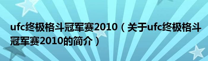 本文關于ufc終極格斗冠軍賽2010的簡介就講解完畢,希望對大家有所幫助。