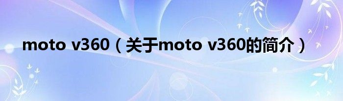 本文關于moto v360的簡介就講解完畢,希望對大家有所幫助。