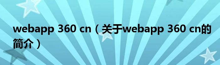 本文關(guān)于webapp 360 cn的簡(jiǎn)介就講解完畢,希望對(duì)大家有所幫助。