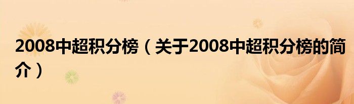 本文關于2008中超積分榜的簡介就講解完畢,希望對大家有所幫助。