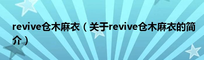 本文關于revive倉木麻衣的簡介就講解完畢,希望對大家有所幫助。