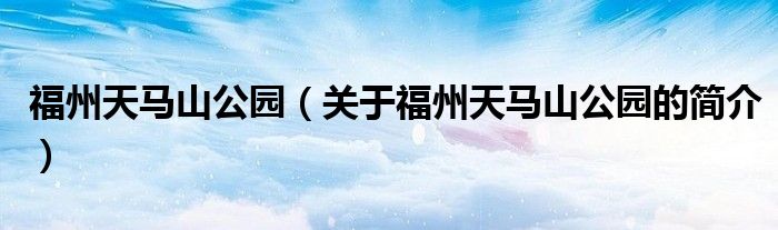 大家好,福州天馬山公園,關于福州天馬山公園的簡介很多人還不知道,現在讓我們一起來看看吧!