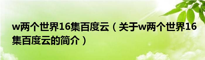 本文關于w兩個世界16集百度云的簡介就講解完畢,希望對大家有所幫助。