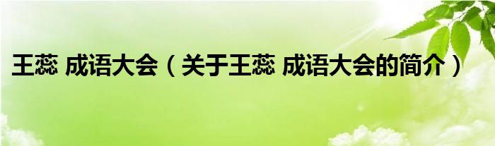 本文關于王蕊 成語大會的簡介就講解完畢,希望對大家有所幫助。