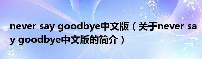 本文關于never say goodbye中文版的簡介就講解完畢,希望對大家有所幫助。
