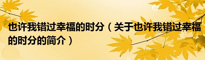 大家好,也許我錯過幸福的時分,關于也許我錯過幸福的時分的簡介很多人還不知道,現在讓我們一起來看看吧!