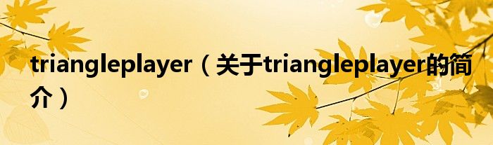 大家好,triangleplayer,關于triangleplayer的簡介很多人還不知道,現在讓我們一起來看看吧!