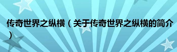 本文關于傳奇世界之縱橫的簡介就講解完畢,希望對大家有所幫助。