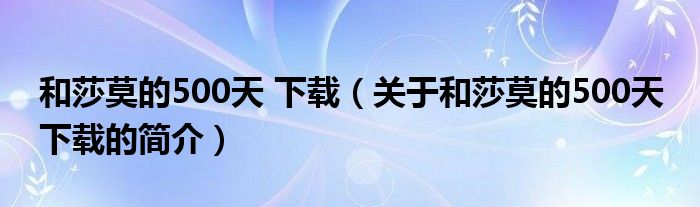 本文關于和莎莫的500天 下載的簡介就講解完畢,希望對大家有所幫助。