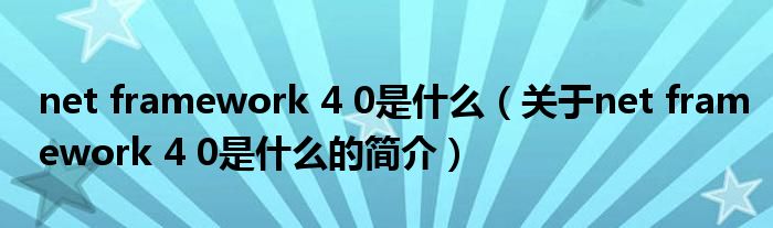 本文關于net framework 4 0是什么的簡介就講解完畢,希望對大家有所幫助。