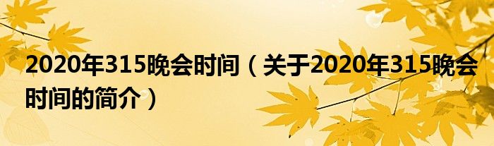 本文關于2020年315晚會時間的簡介就講解完畢,希望對大家有所幫助。