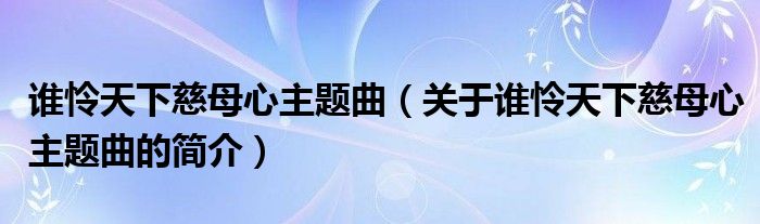 本文關于誰憐天下慈母心主題曲的簡介就講解完畢,希望對大家有所幫助。