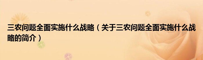 大家好,三農問題全面實施什么戰略,關于三農問題全面實施什么戰略的簡介很多人還不知道,現在讓我們一起來看看吧!