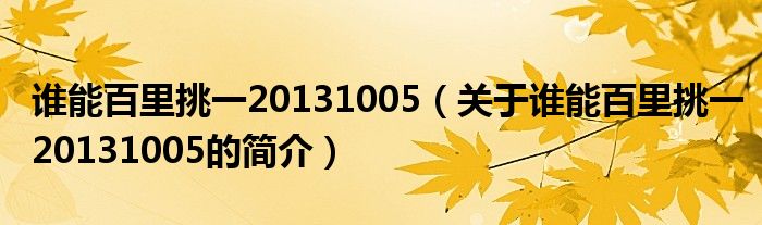 大家好,誰能百里挑一20131005,關于誰能百里挑一20131005的簡介很多人還不知道,現在讓我們一起來看看吧!
