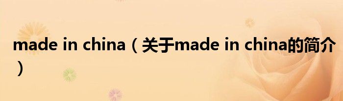 大家好,made in china,關于made in china的簡介很多人還不知道,現在讓我們一起來看看吧!