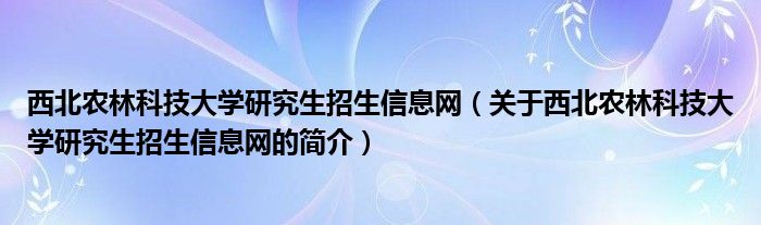 本文關于西北農林科技大學研究生招生信息網的簡介就講解完畢,希望對大家有所幫助。