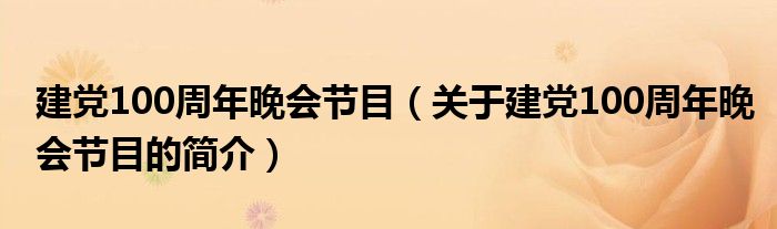 本文關于建黨100周年晚會節(jié)目的簡介就講解完畢,希望對大家有所幫助。