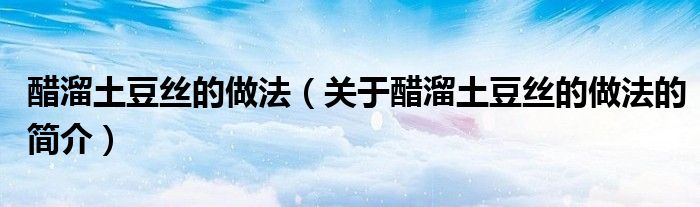 本文關于醋溜土豆絲的做法的簡介就講解完畢,希望對大家有所幫助。