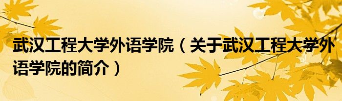 本文關于武漢工程大學外語學院的簡介就講解完畢,希望對大家有所幫助。