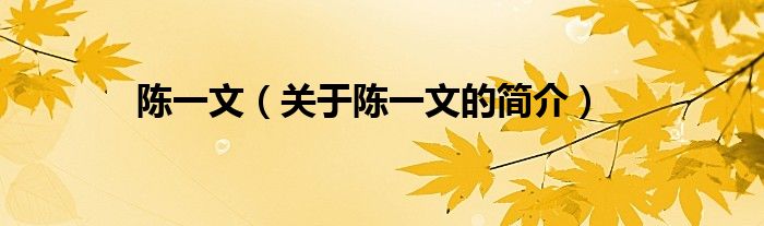 大家好,陳一文,關(guān)于陳一文的簡(jiǎn)介很多人還不知道,現(xiàn)在讓我們一起來看看吧!