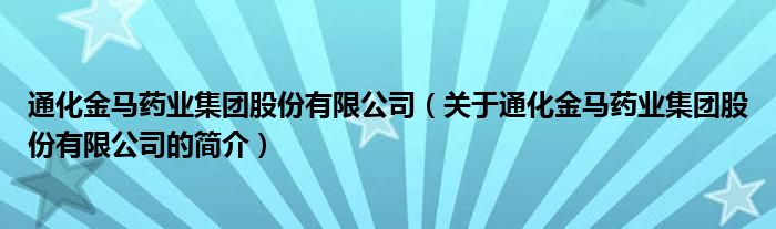 本文關于通化金馬藥業集團股份有限公司的簡介就講解完畢,希望對大家有所幫助。