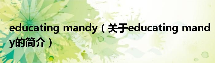 大家好,educating mandy,關于educating mandy的簡介很多人還不知道,現在讓我們一起來看看吧!