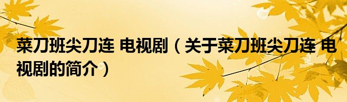 本文關于菜刀班尖刀連 電視劇的簡介就講解完畢,希望對大家有所幫助。