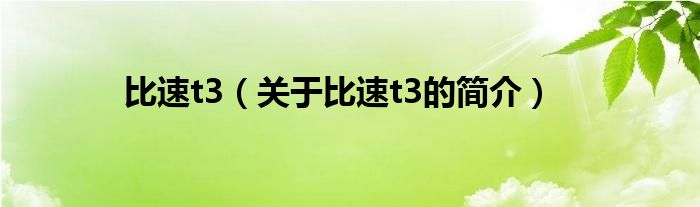 大家好,比速t3,關于比速t3的簡介很多人還不知道,現在讓我們一起來看看吧!