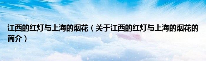 本文關于江西的紅燈與上海的煙花的簡介就講解完畢,希望對大家有所幫助。