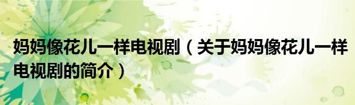本文關于媽媽像花兒一樣電視劇的簡介就講解完畢,希望對大家有所幫助。