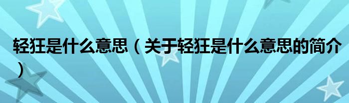 本文關于輕狂是什么意思的簡介就講解完畢,希望對大家有所幫助。