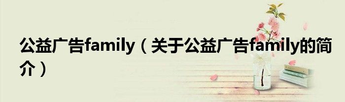 大家好,公益廣告family,關于公益廣告family的簡介很多人還不知道,現在讓我們一起來看看吧!