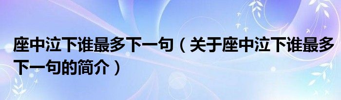 本文關于座中泣下誰最多下一句的簡介就講解完畢,希望對大家有所幫助。