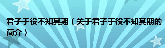 本文關于君子于役不知其期的簡介就講解完畢,希望對大家有所幫助。