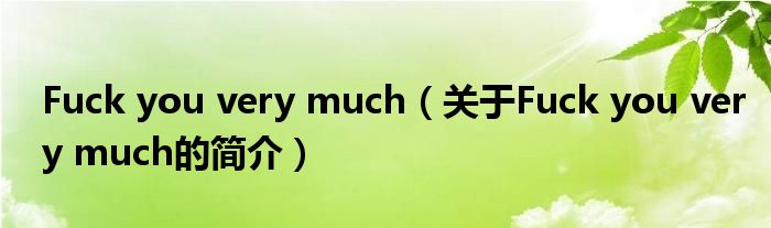 本文關于Fuck you very much的簡介就講解完畢,希望對大家有所幫助。
