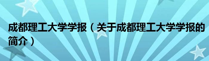 本文關于成都理工大學學報的簡介就講解完畢,希望對大家有所幫助。