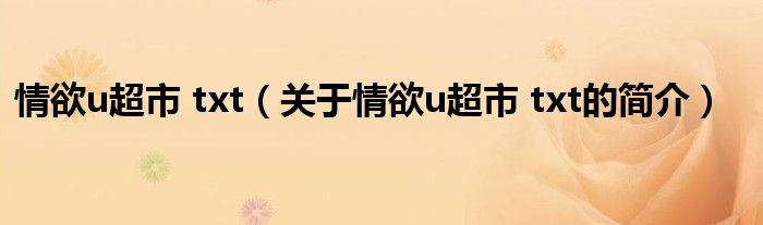 本文關于情欲u超市 txt的簡介就講解完畢,希望對大家有所幫助。