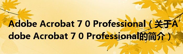 本文關于Adobe Acrobat 7 0 Professional的簡介就講解完畢,希望對大家有所幫助。