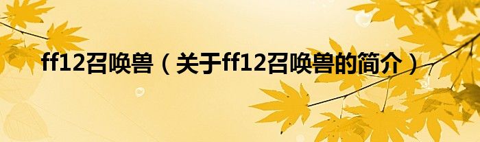 本文關(guān)于ff12召喚獸的簡介就講解完畢,希望對大家有所幫助。