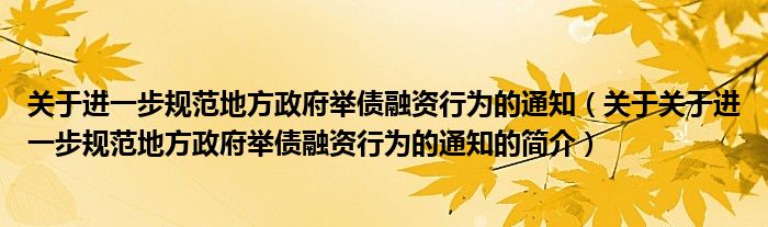 大家好,關于進一步規范地方政府舉債融資行為的通知,關于關于進一步規范地方政府舉債融資行為的通知的簡介很多人還不知道,現在讓我們一起來看看吧!