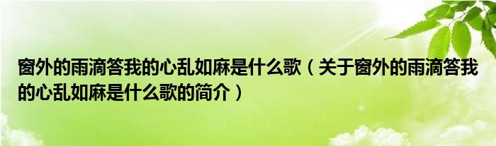 本文關(guān)于窗外的雨滴答我的心亂如麻是什么歌的簡(jiǎn)介就講解完畢,希望對(duì)大家有所幫助。