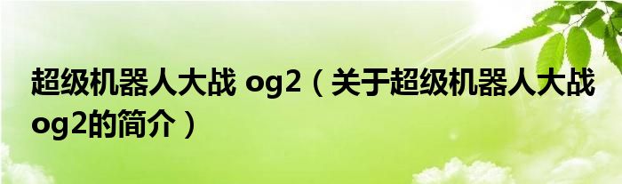 本文關于超級機器人大戰 og2的簡介就講解完畢,希望對大家有所幫助。